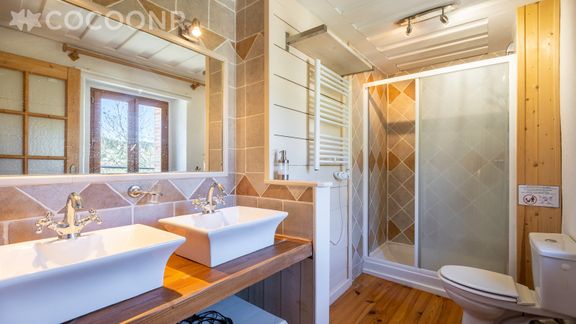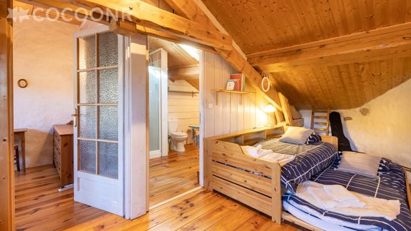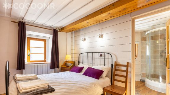 - Chambre 2 : un lit double (140×190) avec salle d'eau attenante et WC