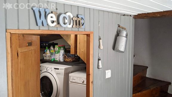 - Une buanderie avec lave-linge, sèche-linge et grand réfrigérateur-congélateur