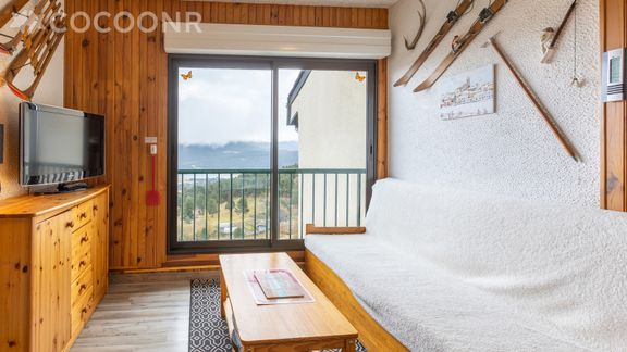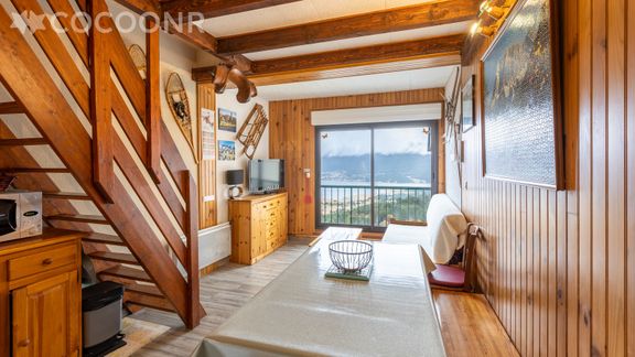 L'Agence Cocoonr/Book&Pay vous propose à la location, aux Angles, cet appartement en duplex, accessible par l'arrière de la résidence, chemin de Planes, grâce à une passerelle, avec vue montagne sur le lac de Matemale, station de ski accessible à pied, d’une superficie de 32 m² et pouvant accueillir jusqu’à 4 voyageurs. Situé au 3e étage (avec ascenseur), il se compose d’une pièce à vivre de 18 m², cuisine ouverte équipée, d’une chambre, une salle de bain (avec baignoire).