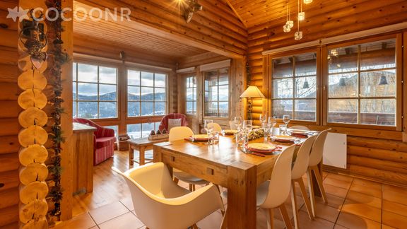 L'Agence Cocoonr/Book&Pay vous propose à la location, aux Angles, ce charmant chalet en rondin classé 4* sur 3 niveaux, avec vue panoramique sur les montagnes, d’une superficie de 145 m² et pouvant accueillir jusqu’à 8 voyageurs (le chalet est confortable pour 6 adultes et 2 enfants). Il est composé d’une jolie pièce à vivre de 60 m² (avec poêle à bois scandinave), d'une cuisine équipée, de quatre belles chambres, de deux salles d'eau et vous pourrez profiter d’un jardin d’environ 300 m². Wifi inclus, nous n’attendons plus que vous !