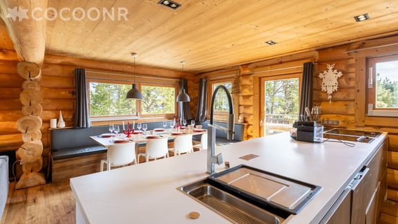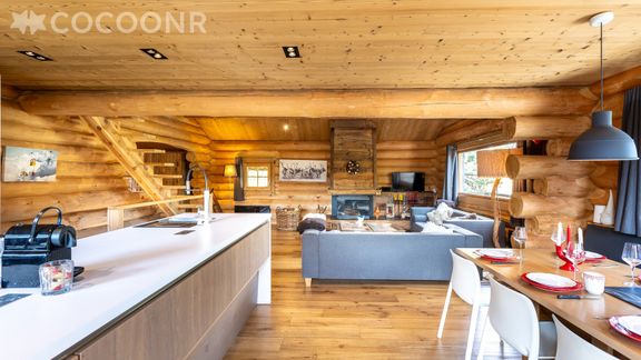 Superbe chalet dans un endroit calme avec un bel espace exterieur (grande terrasse et beau terrain) un peu à l'écart du centre du village. Magnifique pièce à vivre, lumineuse, bois pour la cheminée très appréciable. La cuisine est aussi très bien équipée. Grande mezzanine parfaite pour des ados (escalier trop raide pour des enfants petits).
