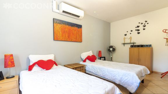 - Deux chambres avec un lit king-size (180×200) et 2 lits simples.