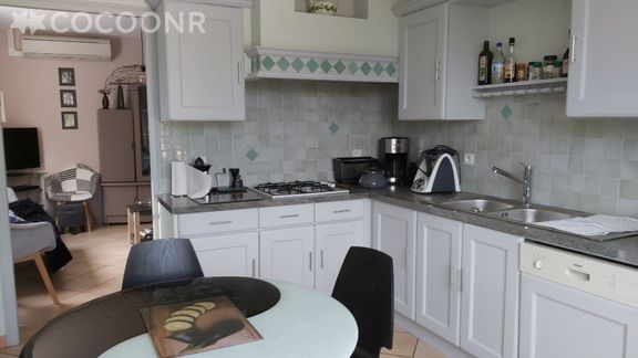 - Une cuisine équipée avec notamment : four, four à micro-ondes, grille-pain, lave-vaisselle, plaques de cuisson, machine à café à filtre... et coin repas.