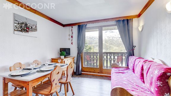 Venez découvrir la charmante station skiable des Menuires et séjournez dans cet appartement classé 2* de 30 m², au pied des pistes avec une vue imprenable sur les montagnes environnantes !
