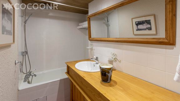 - Salle de bain avec baignoire, lavabo.