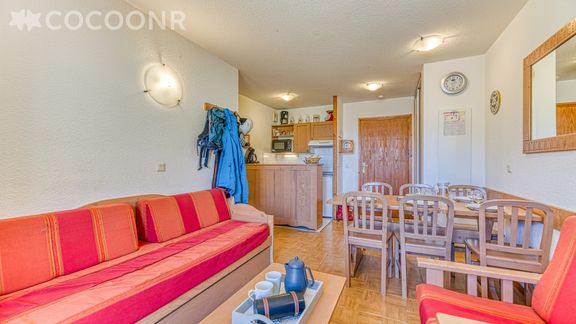 Nous vous proposons à la location, sur la commune de Vénosc, ce charmant appartement avec station de ski accessible à pied, d’une superficie de 43 m² et pouvant accueillir jusqu’à 6 voyageurs. Situé au 4e étage (avec ascenseur), il se compose d’une jolie pièce à vivre de 20 m², d'une Kitchenette ouverte équipée, de deux chambres, deux salles de bain et d'un balcon avec vue sur les pistes. Nous n'attendons plus que vous !
