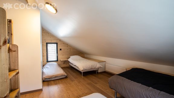 - Chambre 4 : Dortoir de 2 lits simples et un lit superposé (90*190) et 2 matelas supplémentaires disponibles.
