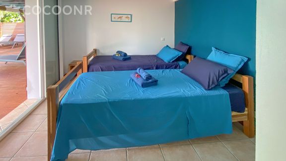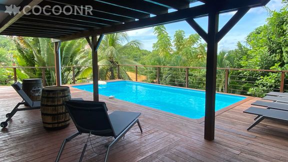 L'agence Cocoonr/BookandPay vous propose à la location, sur la commune de Les Trois-Îlets, cette charmante maison climatisée avec vue mer et montagne, à moins d’un kilomètre de la plage, avec piscine privée, d’une superficie de 157 m² et pouvant accueillir jusqu’à 8 voyageurs. Elle est composée d’une pièce à vivre de 39 m², d'une cuisine équipée, de quatre chambres, de trois salles de bain et vous pourrez profiter d’un terrain arboré bordant la maison et la piscine. Wifi (fibre optique), draps et serviettes inclus, nous n’attendons plus que vous !
