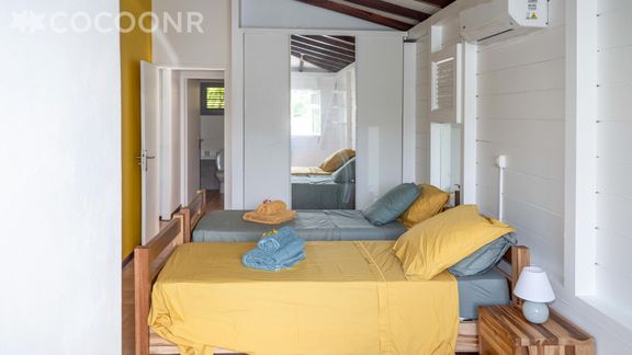 - Chambre 2 : deux lits simples pouvant être rapprochés pour faire un lit 180x200 avec une salle d'eau (douche et WC) attenante