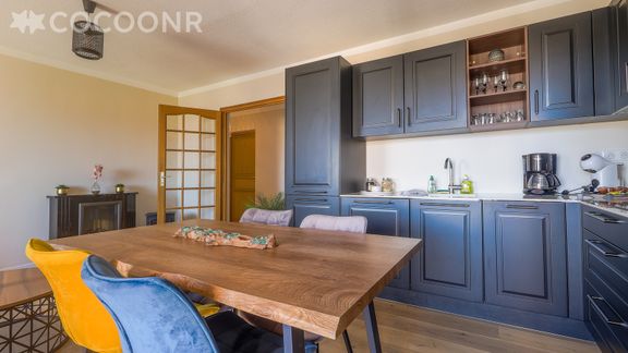 - Une pièce de vie de 25 m² avec TV, un coin salon et un coin repas