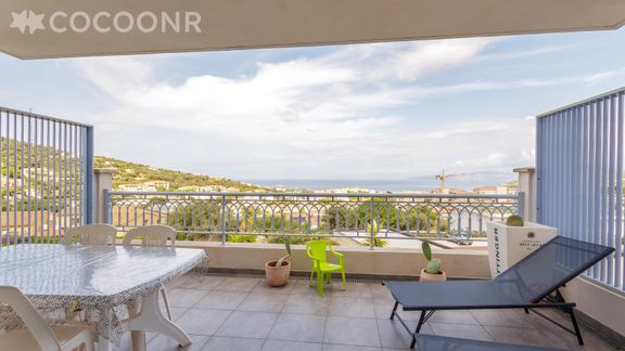 - Un balcon de 17 m² vue sur la baie de l'île-Rousse avec mobilier de jardin pour profiter des beaux jours