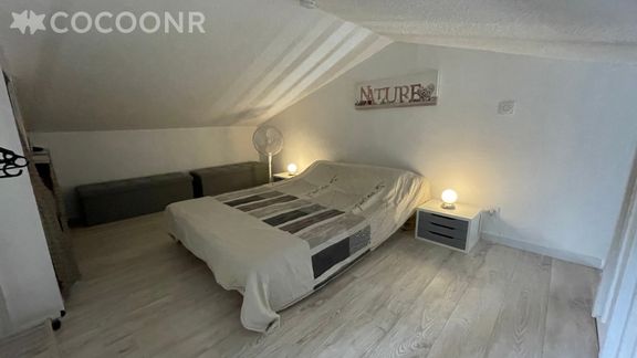 - Une chambre avec un lit double (140×190) en mezzanine.