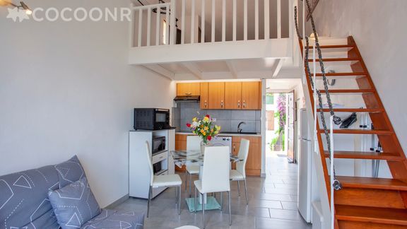 🙁 Le petit bémol c'est la chambre en mezzanine où mon compagnon était plié en deux à chaque fois car pas assez haut mais bon c'est l'inconvénient de ce type de logement.