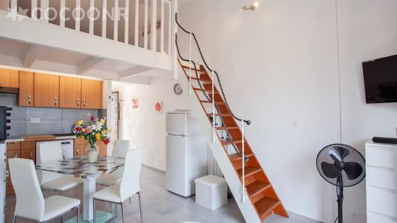 🙂 Appartement situé en hauteur dans l’Île Rousse avec superbe vue sur la mer et la ville. Logement petit mais bien agencé avec tout l’équipement nécessaire pour un séjour longue durée. Chambre en mezzanine, certes en sous-pente (on se tient droit au niveau du faîtage), mais assez spacieuse. La climatisation est indispensable par forte chaleur. Orienté est-ouest, le soleil éclaire l’appartement le matin et l’ombre l’après-midi atténue la chaleur. On peut aisément rejoindre le centre-ville et la plage à pieds (10 à 15 )mn. Samia qui entretient le logement est très avenante.