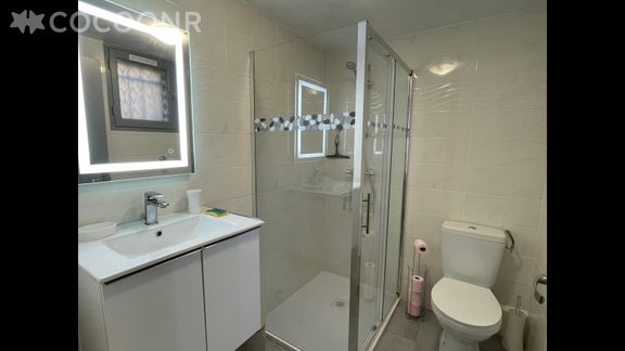 - Une pièce de vie de 25 m² avec canapé-lit double, TV, coin repas