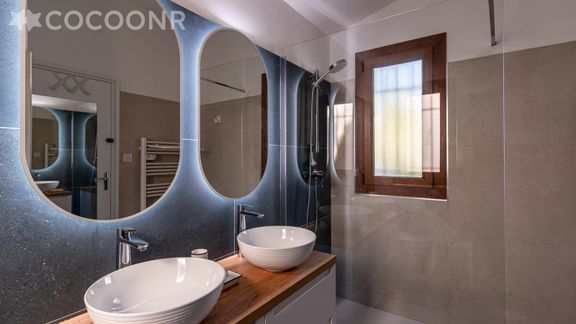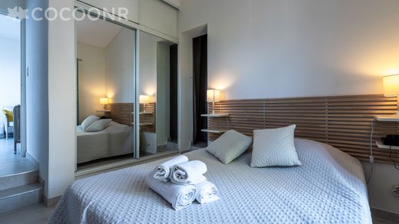 - Chambre 1 : un lit double (140x190) et une salle d'eau attenante avec douche et WC
