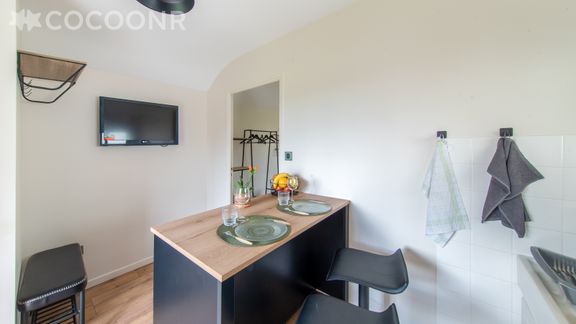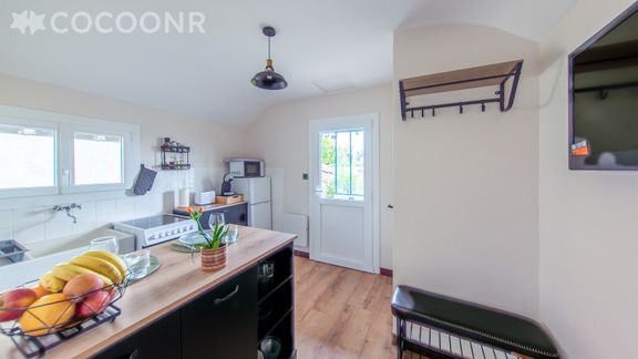 - Une cuisine équipée avec notamment : bouilloire électrique, four, four à micro-ondes, grille-pain, plaques de cuisson...
