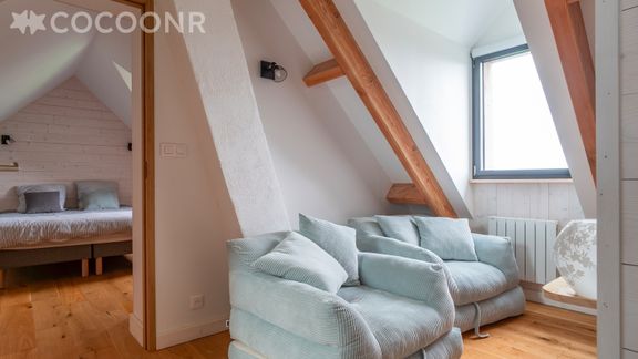 L'agence Cocoonr/Book&Pay vous propose à la location, à Locmaria, cette charmante maison, à moins d’un kilomètre de la plage, d’une superficie de 150 m² et pouvant accueillir jusqu’à 8 voyageurs. Elle est composée d’une jolie pièce à vivre de 150 m² (avec cheminée), d'une cuisine équipée, de quatre belles chambres, quatre salles de bain (avec douche et baignoire) et vous pourrez profiter d’un jardin d’environ 200 m². Draps, serviettes et Wifi inclus, nous n’attendons plus que vous !