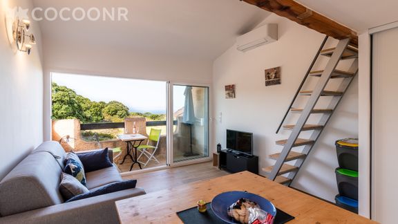 Nous vous proposons à la location, sur la commune de Lumio, ce charmant appartement climatisé avec vue mer sur la baie de Calvi, à moins d’un kilomètre de la plage, d’une superficie de 23 m² et pouvant accueillir 2 voyageurs. Situé au 1er étage (sans ascenseur), il se compose d’une jolie pièce à vivre de 23 m², d'une cuisine ouverte équipée, une belle chambre en mezzanine, une salle d'eau et d'un balcon pour apprécier la vue que vous offre l'appartement. Nous n’attendons plus que vous !