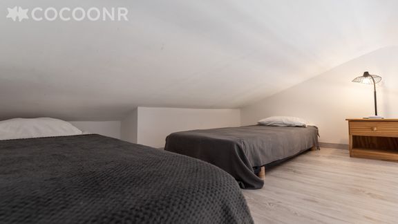 - Une chambre en mezzanine avec deux lits simples.