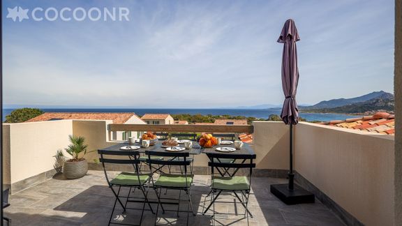 Magnifique vue sur la mer et la montagne. On peut meme apercevoir le Cap Corse au loin lorsque le temps est dégagé. Appartement fonctionnel ou nous avons passé de superbes vacances.