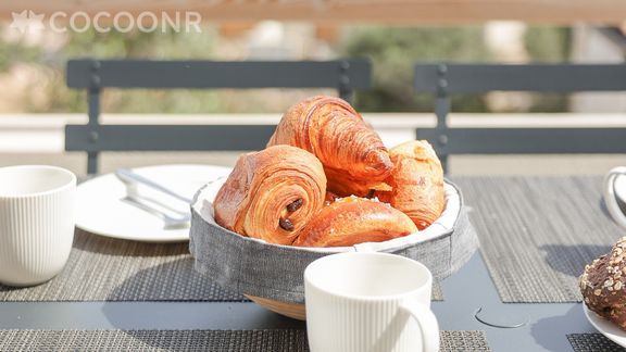 - Une terrasse d'environ 18 m², exposée Nord Ouest, bénéficiant d'une vue mer et montagne à 180°, avec mobilier pour profiter des beaux jours.
