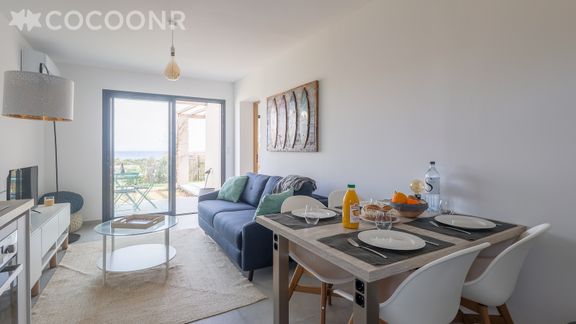 L'agence Cocoonr/Book&Pay vous propose à la location, à Sant Ambroggio, ce charmant appartement climatisé avec vue mer et jardin, à moins d’un kilomètre de la plage, d’une superficie de 37 m² et pouvant accueillir jusqu’à 4 voyageurs. Situé au rez-de-chaussée, il se compose d’une jolie pièce à vivre de 19 m², d'une cuisine ouverte équipée, d’une belle chambre, d'une salle d'eau et d’un jardin d’environ 90 m² ainsi que de deux terrasses. Nous n’attendons plus que vous !