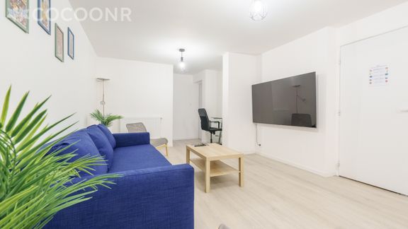 - Une pièce de vie de 25 m² avec TV, canapé-lit double et espace de travail