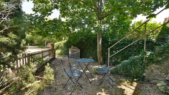 - Un jardinet de 25 m² avec table, chaises et chaises longues