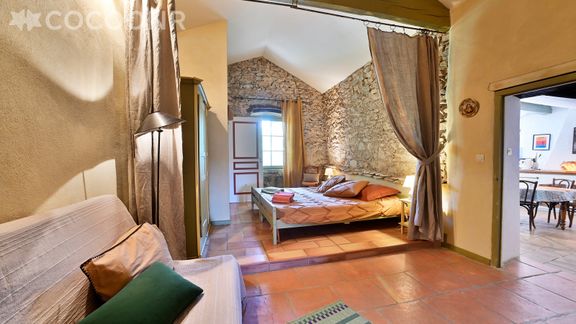 Nous vous accueillons dans cette ancienne magnanerie du XVIIème siècle, nichée au cœur de la Provence, sur la commune de Lussan, à 15 km de l’élégant Duché d’Uzès et à 24 kilomètres du parc national des Cévennes. Ce charmant gîte avec entré privative, d’une superficie de 80 m² et pouvant accueillir jusqu’à 6 voyageurs, se compose d’une jolie pièce à vivre de 25 m², d'une cuisine équipée, de deux belles chambres, d'une salle de bain (avec baignoire), d’une terrasse tropézienne et vous pourrez profiter d’un jardin partagé d’environ 200 m² avec piscine et cuisine d’été. Wifi (fibre optique), draps et serviettes inclus, nous n’attendons plus que vous !