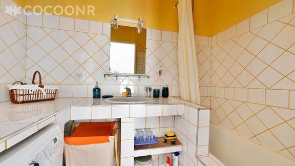 - Une salle de bain avec baignoire