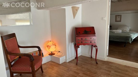 - La mezzanine accueille un coin bureau idéal pour télétravailler ou planifier vos visites, ainsi que deux chambres cosy, l'une un lit double et l'autre un canapé lit, parfaites pour des enfants, amis ou voyageurs supplémentaires.