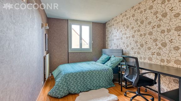 - Chambre 3 : avec un lit double (140x190), un bureau et un canapé