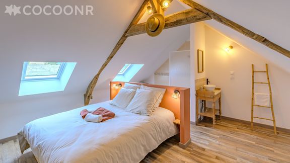 - Chambre 1 : avec un lit queen-size (160×200), une salle d'eau avec douche à l'italienne