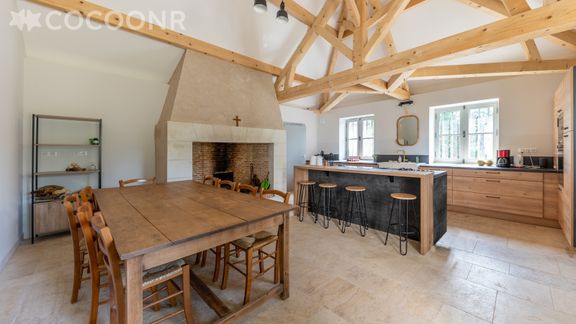L’espace disponible dans les différentes pièces, chambres a permis à notre 4 familles d’être ensemble et en même temps d’avoir chacun un espace à soi. Le feu dans la cheminée très agréable dans la cuisine en ce début d’automne. Cuisine dans laquelle il est facile et agréable de cuisiner. La réactivité du concierge et du propriétaire pour un petit problème de chaudière est à noter et féliciter. Belles visites et promenades à faire au départ du château ou dans les environs