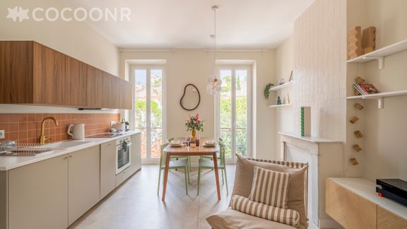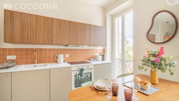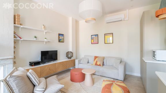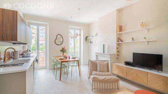 Ce bel appartement rénové en 2025 allie charme marseillais et confort moderne : salon climatisé, jolie décoration, et petite vue sur la Bonne Mère depuis le 2ᵉ étage.