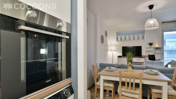 - Une cuisine équipée avec notamment : bouilloire électrique, four, four à micro-ondes, grille-pain, lave-vaisselle, plaques de cuisson...