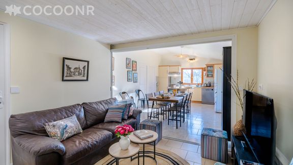 Elle est composée d'une pièce à vivre de 30 m², cuisine équipée, de trois chambres, de deux salles d'eau avec douche et vous pourrez profiter d'un jardin d'environ 2 000 m². Wifi (fibre optique), draps et serviettes inclus, nous n'attendons plus que vous !
