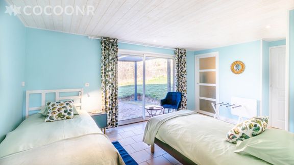 - La chambre Martin-Pêcheur dispose de deux lits simples (90x200) et d'une salle d'eau attenante avec douche et d'un WC séparé