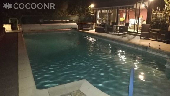 - Une piscine chauffée ouverte de mai à fin octobre, d'une dimension de 10 x 5 m et d'une profondeur de 2.80 m. Elle est sécurisée par un volet roulant rigide et partagée avec les propriétaires.