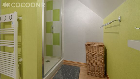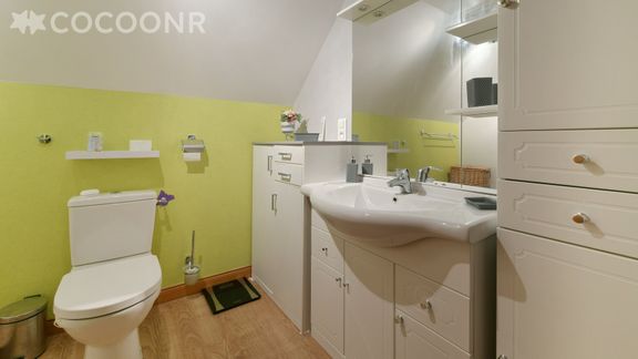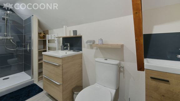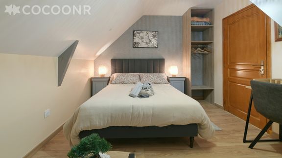 - Chambre 2 : un lit double (140×190) avec salle d'eau attenante et WC privative.