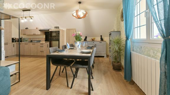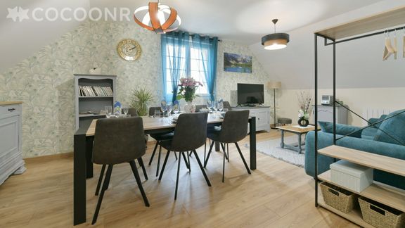 L'agence Cocoonr/Book&Pay vous propose à la location, à Mayenne, cet appartement avec jacuzzi, d’une superficie de 50 m² et pouvant accueillir jusqu’à 7 voyageurs. Situé au 1ᵉʳ étage (sans ascenseur), il se compose d’une pièce à vivre de 24 m², d'une cuisine équipée, de trois chambres, de deux salles d'eau (avec douche) et vous pourrez profiter d’un jardin d’environ 800 m². Wifi (fibre optique), draps et serviettes inclus, nous n’attendons plus que vous !