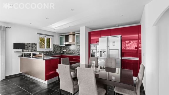 - Une cuisine équipée comprenant : bouilloire électrique, four, micro-ondes, grille-pain, lave-vaisselle, plaques de cuisson, ainsi qu’un coin repas aménagé avec table et chaises pour vos moments conviviaux.