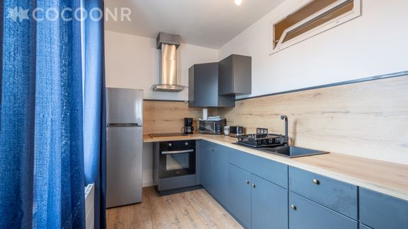 - Une cuisine équipée avec notamment : lave-vaisselle, bouilloire électrique, four, four à micro-ondes, grille-pain, plaques de cuisson...