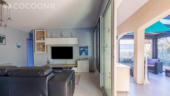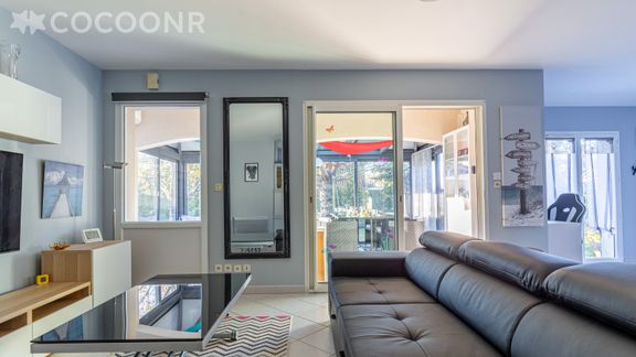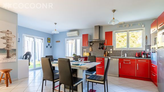 D'une superficie de 94 m², ce logement pouvant accueillir jusqu'à 7 voyageurs se compose de la manière suivante : une grande pièce à vivre avec un coin salon, un espace repas, une véranda, une cuisine entièrement équipée, trois chambres, une salle de bain ainsi qu'un grand jardin pour profiter d'un moment de détente au soleil !