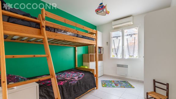 - Chambre 3 : un lit superposé (2 couchages) et un lit gigogne afin doubler la largeur de la partie basse du lit superposé.