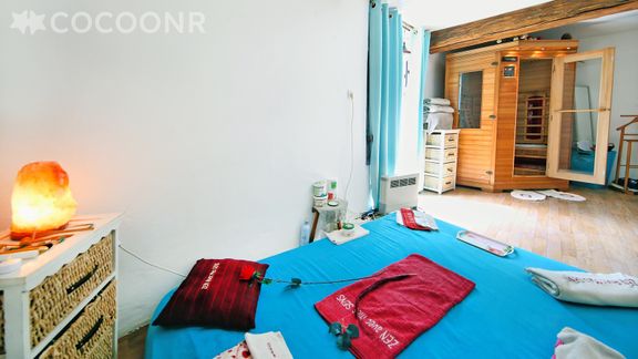 - Un cabinet de bien-être vous est proposé sur place avec sauna (2 personnes) et jacuzzi privatisable ! Le jacuzzi est disponible d'avril à octobre (7 personnes) dimension 2m30 x 2m40 dans un espace fermé avec grande baie ouvrable. Cet espace contient également tapi de marche, vélo d'appartement et coin sitting