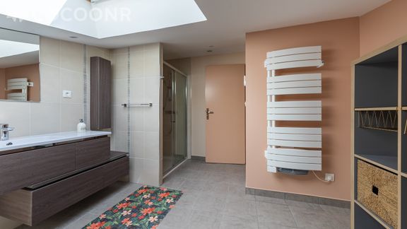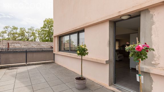 - Une terrasse de 60 m², exposée plein Est, avec store banne et mobilier pour profiter des beaux jours bénéficiant d'une vue au loin sur le lac de Torcy.