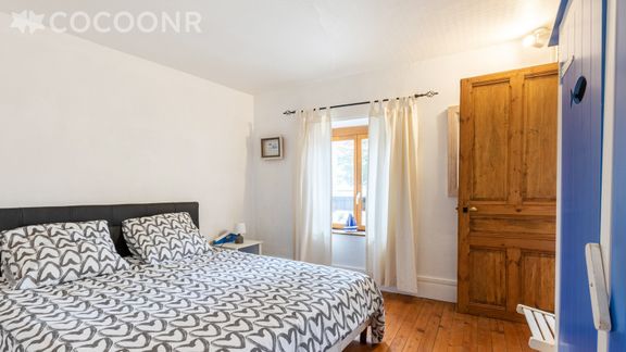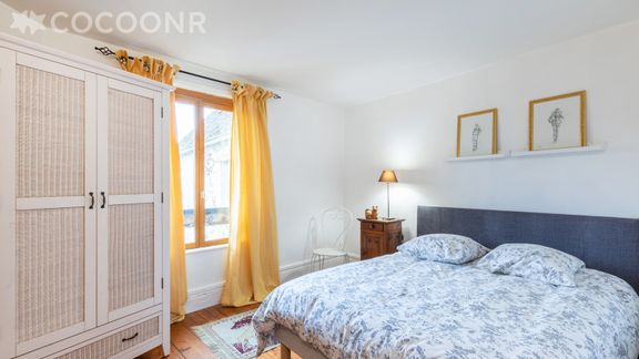 - Chambre 1 : au 1er étage avec un lit queen-size (160 x 190) et des rangements.