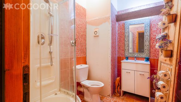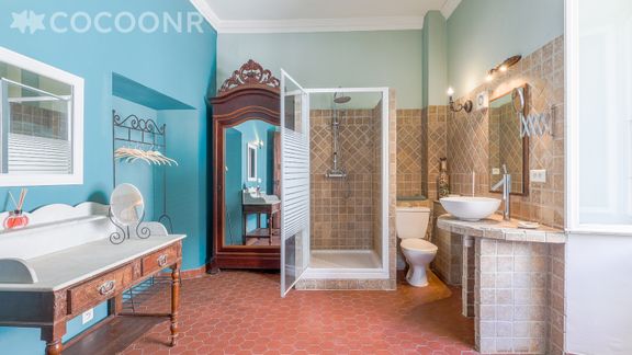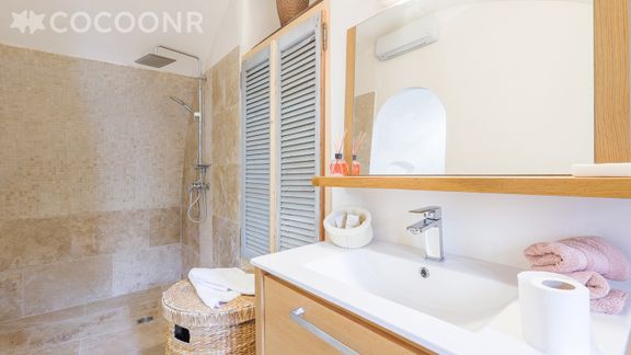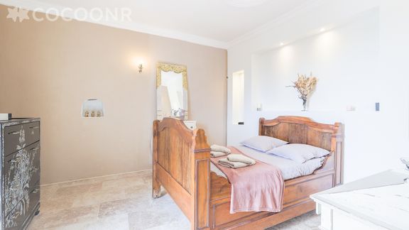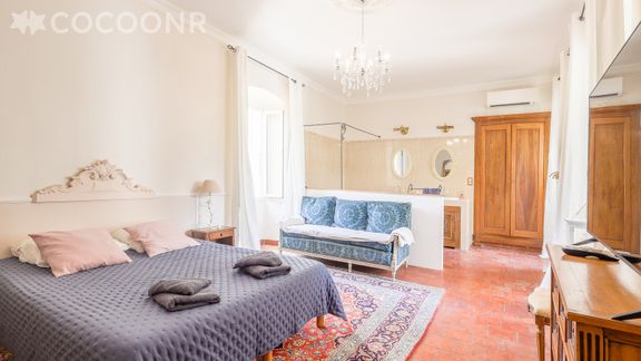 - Chambre 1 : un lit double (140×190) et salle de bain attenante, TV